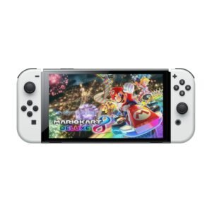- Nintendo Switch – El paquete OLED incluye una consola, el juego Mario Kart 8 Deluxe y 12 meses de Nintendo Switch Online. Este paquete tiene todo lo que necesitas para comenzar a jugar de inmediato, incluido un sistema Nintendo Switch – Modelo OLED con controladores Joy-Con blancos. Además, disfruta de un valor agregado de $79.98* con una descarga completa para el juego completo Mario Kart 8 Deluxe y una membresía individual en línea Nintendo Switch de 12 meses**. Puedes comenzar carreras multijugador desde el primer momento, simplemente pasa un controlador Joy-Con a un amigo y juega juntos en el mismo sistema. O coge más controladores (se venden por separado) y consigue hasta 4 personas en la diversión.